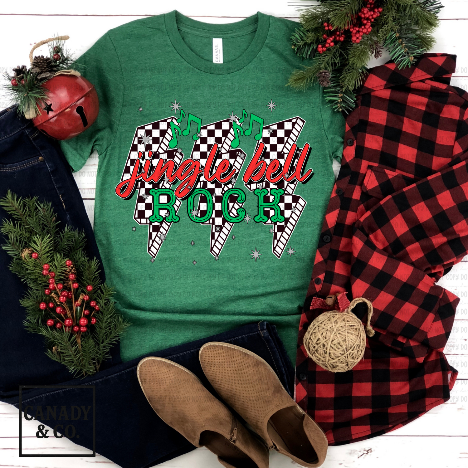 This tee is giving major holiday concert vibes with bold checkered lightning bolts ⚡, festive red + green lettering, and just the right touch of retro cool. Perfect for holiday parties, cozy nights by the tree, or rocking around town in true Christmas style! 🎄❤️💚